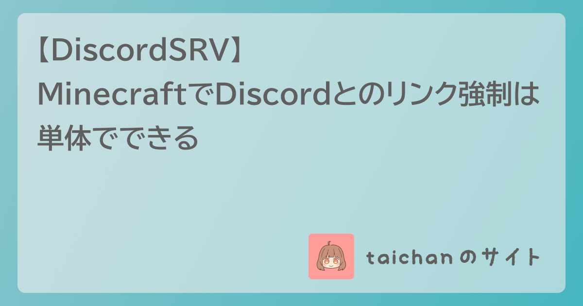 【DiscordSRV】MinecraftでDiscordとのリンク強制は単体でできる2024年現在でもMinecraft(Java版)のSpigotやPaperでサーバーを建てた際にDiscord連携を必須にしようとするとプラグインを複数使用する記事が出てきますが、単体で十分です。設定方法を解説します。タグ: Minecraftサーバープラグイン(Minecraft)SpigotPaperMCDiscordSRV2024年8月14日